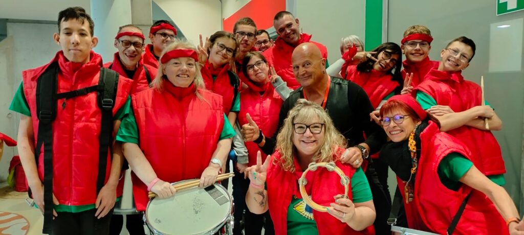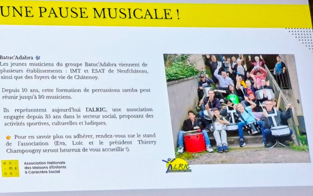 26 mars 2026, pour les journées nationales de l"ANMECS, l’ALRIC "fait du bruit avec la Batucada menée par Magali, IMT de Neufchateau ,foyer de Chatenois et Rapadi...